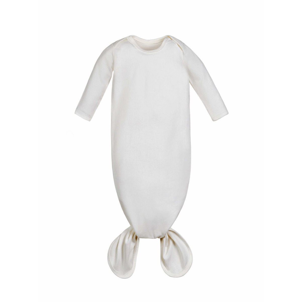 Made of 100% organic Egyptian cotton. This essential white drop needle knotted gown is made to cuddle your baby in butter soft organic cotton. Perfect for easy diaper changes in the middle of the night, our baby gown features an open knotted tie bottom and a lap shoulder design for easy changing by pulling over the head or down from the shoulders. Keep your little one cozy and comfortable with the gown and beanie, while also supporting sustainable and environmentally-friendly practices.