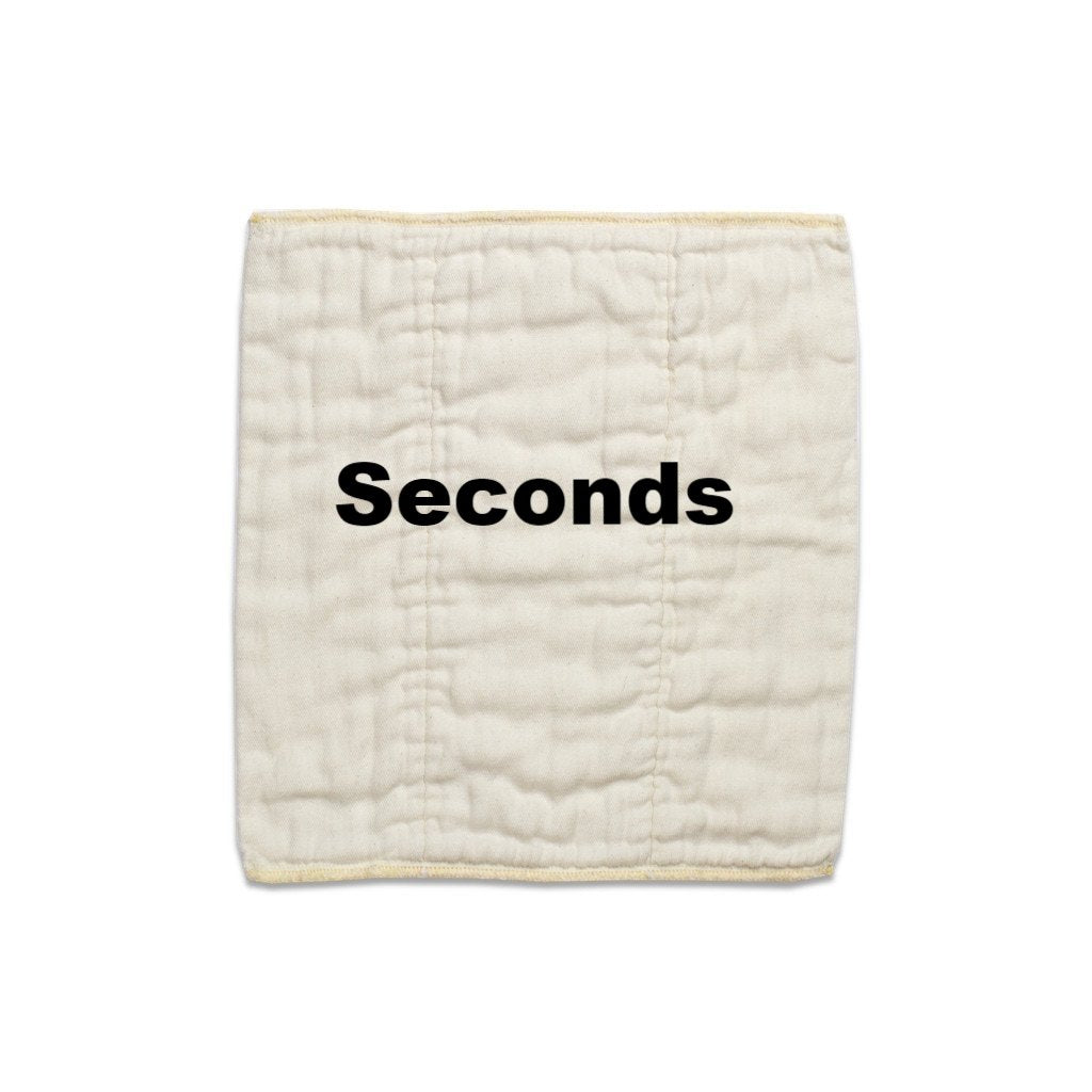 Grab Bag # 12 : One dozen SMALL Organic Natural Prefolds SECONDS. Brand new, second quality. Usually the issue is size irregularity. May be smaller or larger than first quality. Some have pulled threads, marks, or irregular weave.